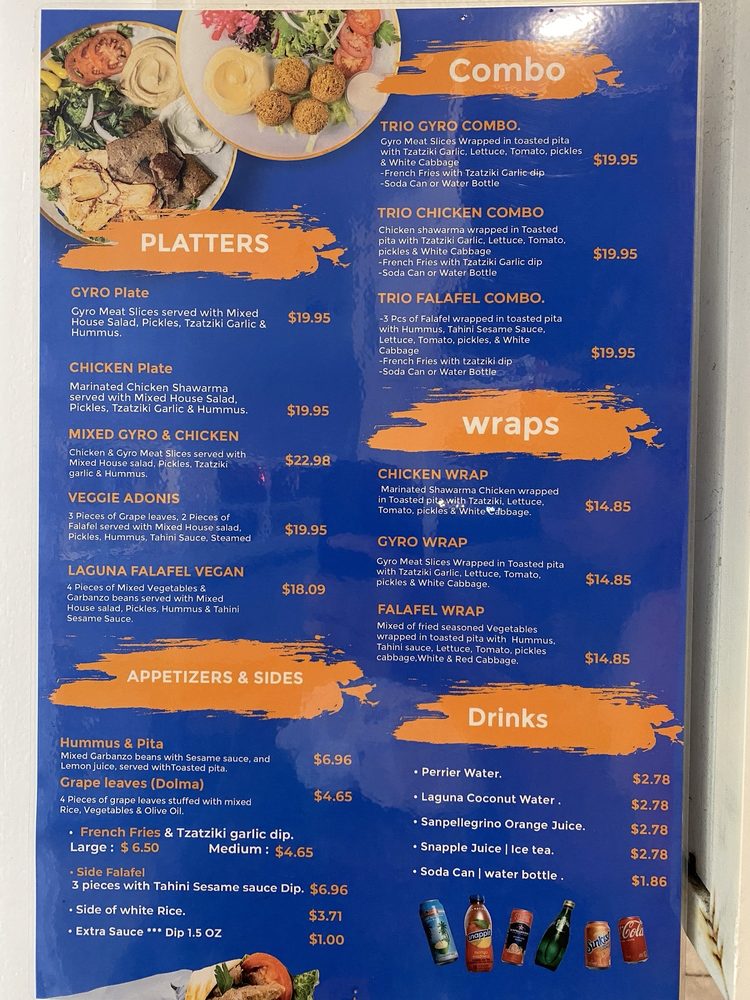Adonis Mediterranean Grill, located in Laguna Beach, offers a variety of Mediterranean dishes with a charming atmosphere. The menu features must-try items like the Trio Gyro Wrap and the Veggie Adonis House Salad. Customers rave about the flavorful gyro plates and the friendly service provided by the owner. The restaurant has a casual setting with outdoor seating and is great for groups and families. While it's cash only, there is an ATM inside for convenience. The fresh and delicious food, along with the hospitable staff, make Adonis Mediterranean Grill a hidden gem worth visiting. The reviews highlight the quality of the dishes and the overall enjoyable dining experience at this Mediterranean restaurant.